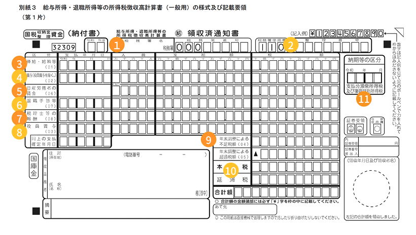参照:『納付書の記載のしかた(給与所得・退職所得等の所得税徴収高計算書)』国税庁