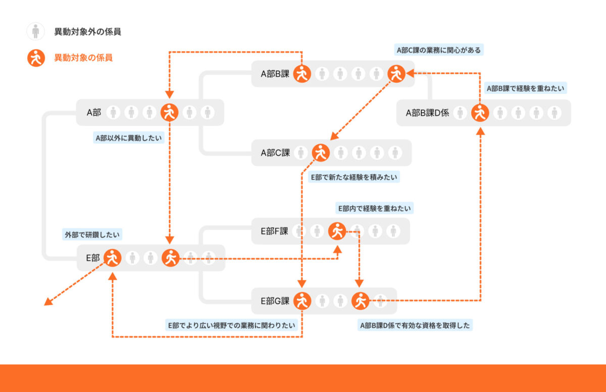 - 様々な職務経験を積むために、一定期間同じ部署での経験を積んだ係員を未経験部署へ配置転換